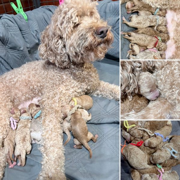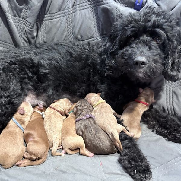 Tia has delivered the sweetest litter!! This is Tia's last litter before she retires and she has produced some beautiful babies! Tia weighs 23lbs and River, her stud weighs 15lbs. There is still some room on her reserve list! Contact us for more details.