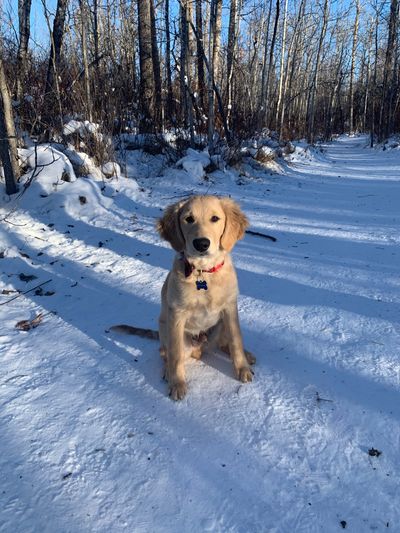Lolly is 10 months old now, and about 55 lbs, and I can honestly say she is my best friend and the best decision I ever made! She is so sweet, silly, and smart! She LOVES hikes in the mountains, swimming, and she would play fetch for hours on end if she could. She has tons of energy when it's time to get outside but she is easily calmed and loves cuddling on the couch too. She has brought so much joy to not only my life, but anyone's she meets! She is great with other dogs, cats, and people of all ages. She is such a happy girl all the time! Every time she has been to the vet or the trainer they always comment on her temperament and how gentle and calm she is. I really can't say enough wonderful things about my experience, and would recommend anyone who wants a loving, happy, healthy Golden Doodle to N'Joy Doodles.